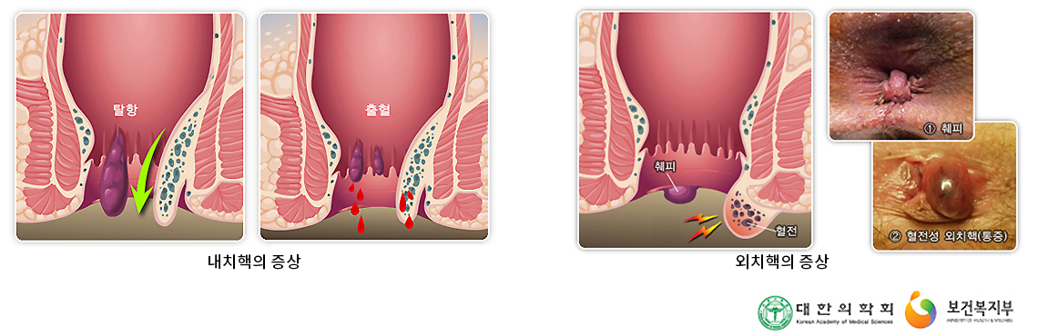 항문관을 형성하는 점막 아래에는 많은 수의 혈관이 그물처럼 잘 발달해 있으며, 어떤 원인에 의해 이들 혈관과 점막조직이 붓고 늘어나서 치핵이 발생합니다.