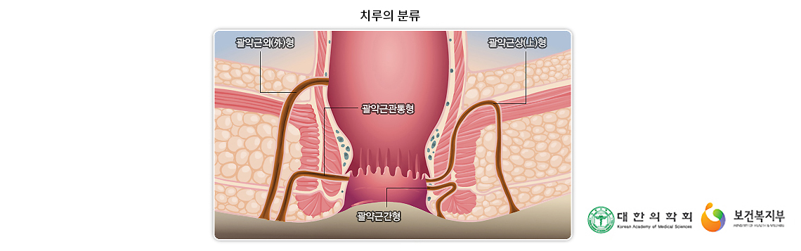 치루는 외괄약근과 누관의 상관관계에 따라 다음과 같이 분류됩니다.