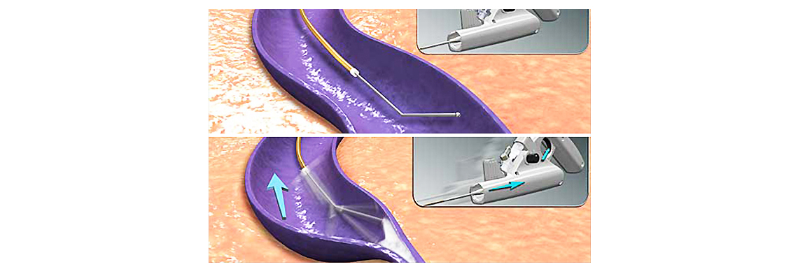 주사바늘을 이용해 혈관 안으로 약물을 주입할 수는 있어도 길이가 정해진 주사바늘이 혈관을 계속해서 따라 들어가기 어렵다는 점에서 착안된 것으로 와이어 타입의 도관이 망가진 정맥을 따라 가면서 약제인 STS(Sodium Tetradecyl Sulfate)를 혈관 내벽에 직접 분사하여 보다 안정적으로 사용할 수 있다는 장점이 있습니다.